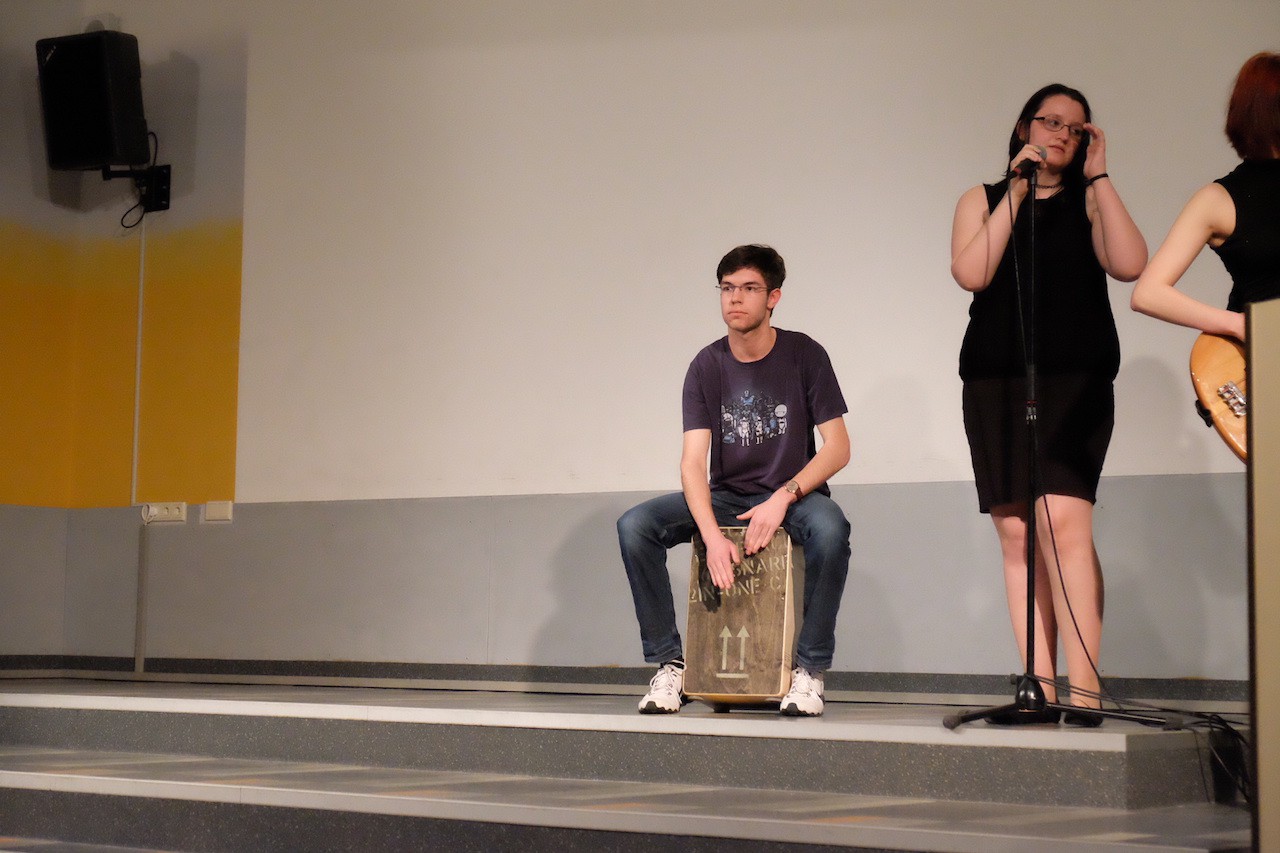 Mit Spass und Tiefsinn, humorvoll und intellektuell präsentierten die Schülerinnen und Schüler der 12. Klassen ihre Schulzeit. Gesang und Schauspiel, Tanz und Instrumentaldarbietugen in lockerer Abfolge ließen den Abend in der Aula unseres Gymnasiums nicht langweilig werden.