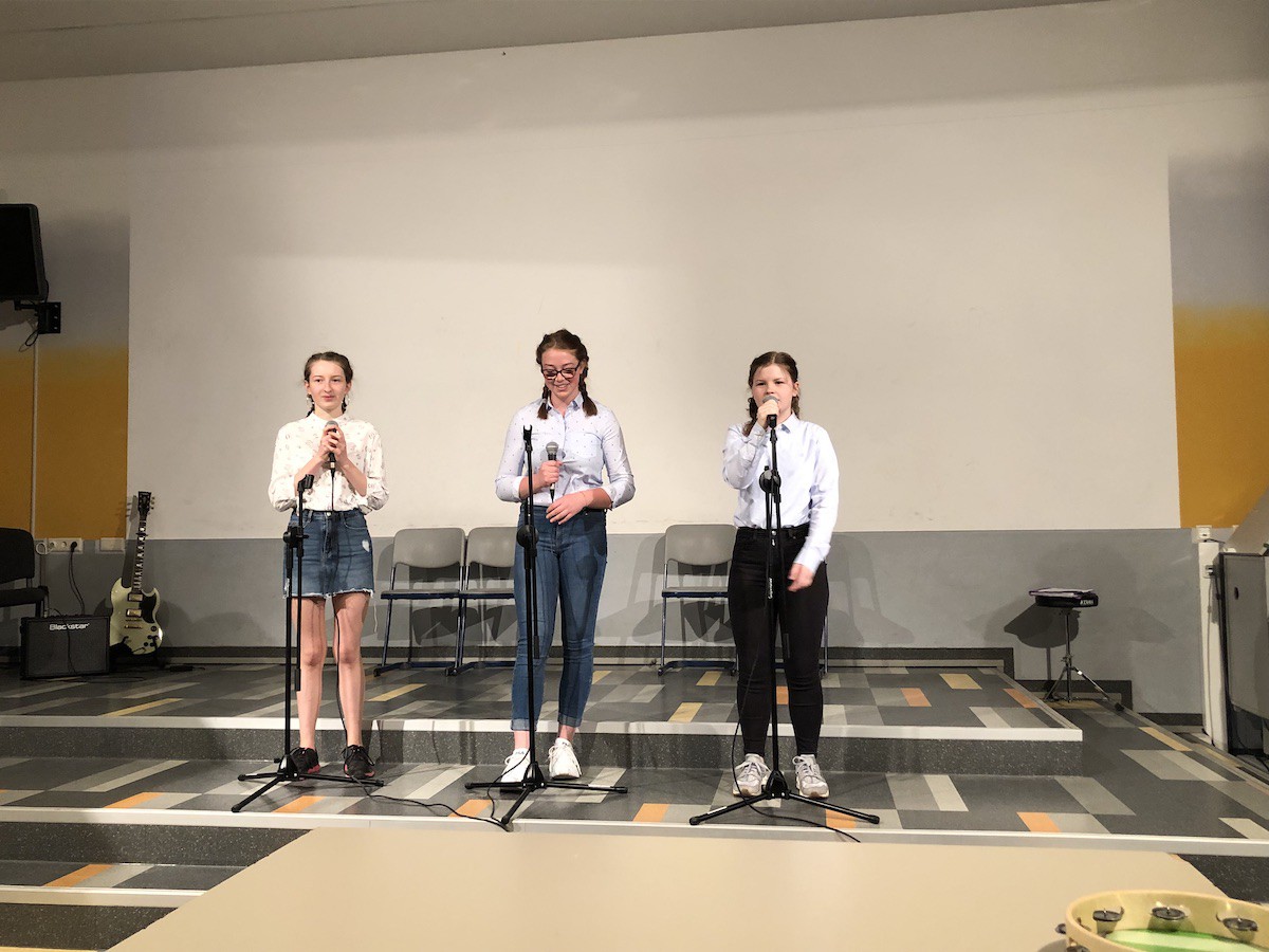 Im Rahmen der Musikkurse der 10. Klassen fand am 09.04.2019 in den ersten vier Stunden eine Präsentation in der Aula statt. Die Schüler fanden sich in selbstgewählten Gruppen zusammen und erarbeiteten eigenständig zu verschiedenen Themen Programme mit Musik, Tanz und Gesang. Dadurch, dass das zweite Halbjahr den Kompetenzschwerpunkt „Praktisches Musizieren und Präsentieren“ beinhaltet, welcher viele musikalisch- kreative Aspekte, die das Zusammenstellen eines Aufführungsprogrammes mit Ergebnissen der Unterrichtsarbeit oder die musikalische Gestaltungkompetenz, wie dem Auswählen geeigneter Texte, Lieder und Spielstücke erfordert, bot dieses Projekt eine gute Möglichkeit, um viele Bereiche abzudecken und auch über das Unterrichtsgeschehen hinaus eigene Vorstellungen einfließen zu lassen. Das Programm war ein Resultat wochenlanger Proben.