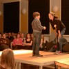 So musste das Publikum über eineinhalb kurzweilige Stunden stetige Angriffe auf seine Lachmuskeln über sich ergehen lassen. Zwischendurch durfte es sich am leckeren Bufett der Klasse 10b erquicken, ehe die Schauspieler wieder temporeich und unermüdlich über beide Bühnenteile fegten. Zum Schluss gab es einen kräftigen Applaus für alle Darsteller.