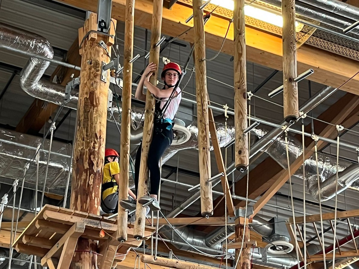 Die Schülerinnen und Schüler dieses Jahrgangs unternahmen einen Ausflug in den Indoor Kletterwald im Einkaufszentrum Nova in Günthersdorf. Nach einer kurzen Einweisung und dem Anlegen von Klettergurt und Helm hieß es, sich zunächst an den einfacheren Parcours auszuprobieren. Angeleitet und unterstützt von mehreren Trainern gelang das den meisten Schülern ganz passabel.