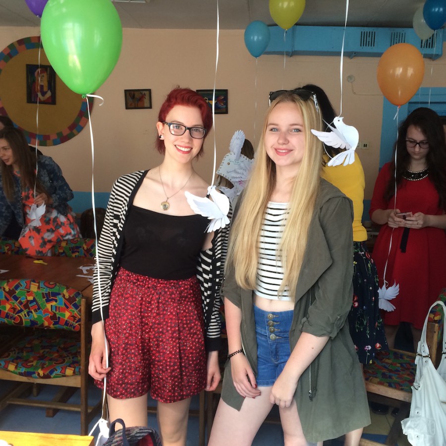 Am nächsten Morgen ging es wieder früh raus aus den Federn, denn wir hatten ein volles Programm. Nach dem Frühstück bastelten wir Friedenstauben in einer Musikschule, die wir an Heliumballons banden und zusammen mit unseren Wünschen in den Himmel steigen ließen. Danach zeigten uns die russischen Schüler, was sie musikalisch drauf haben und wie immer boten auch wir unseren kleinen Auftritt dar.