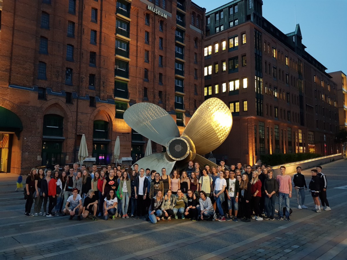 Moin, moin, Hamburg hieß es am Montag, den 28.08.17 für die 10. Klassen. Nachdem alle mit Gepäck und guter Laune an der Schule angekommen waren, machten wir uns mit einem Doppeldeckerbus auf Richtung Norden. Mit gelegentlichen Verkehrsproblemen und einigen Pipipausen kamen wir nach ca. 6 Stunden vor unserem Hostel an.