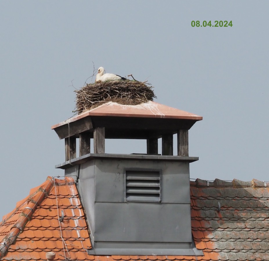 Im Jahr 2024 haben wir die Störche am 25. März 2024 erstmalig beobachtet. Wir befürchteten schon, dass unser Storchennest, wie im vergangenen Jahr, wieder leer bleibt, da es wieder heftige Kämpfe mit Krähen gab.