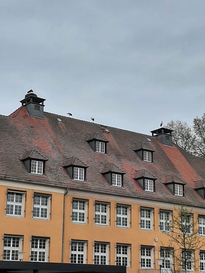 Das Storchenpaar auf dem Haus II unseres Gymnasiums